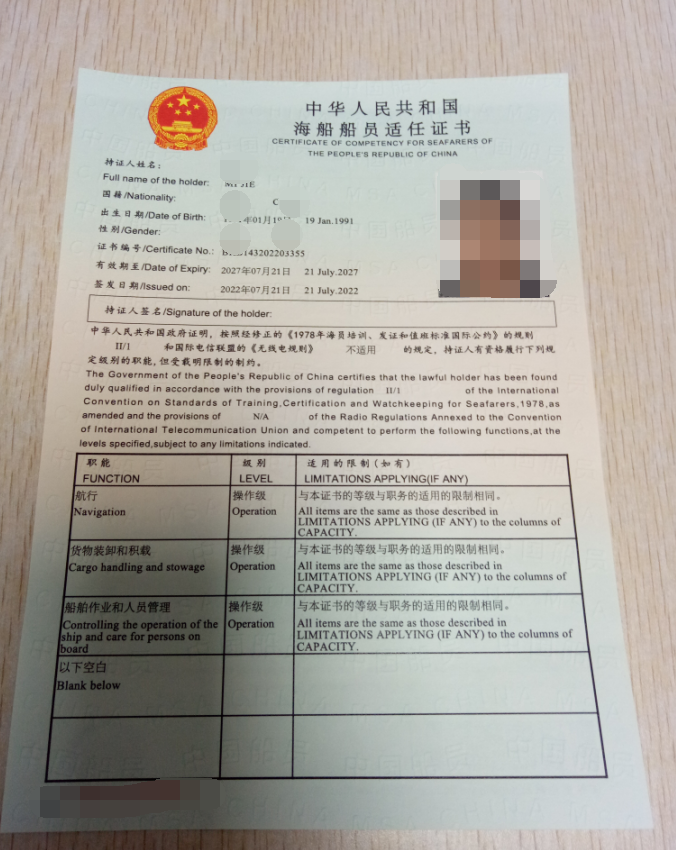 适任证书 (更新)